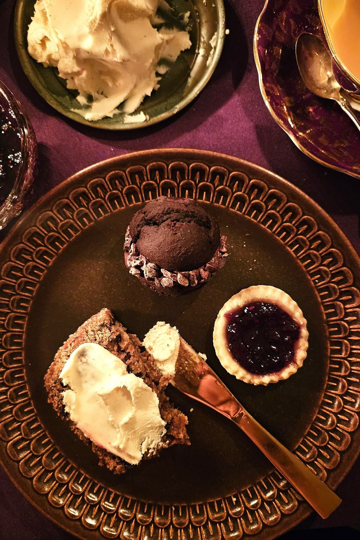 - Bara Brith - this traditional Welsh fruit loaf (also known as Barmbrack in Ireland) is chock full of raisins and assorted dried fruits soaked in strong tea, with an added shot of whisky. Serve slices of it to slather in butter or more clotted cream! (Recipe coming soon to the blog.)