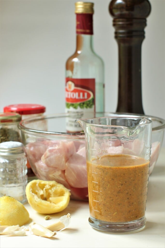 - This makes a scant ¾ cup (175ml) of souvlaki marinade, enough to marinate 3 to 4 lbs (1.5-1.8kg) of cubed meat. If using less meat, any leftover unused marinade will keep up to 2 weeks in the refrigerator.