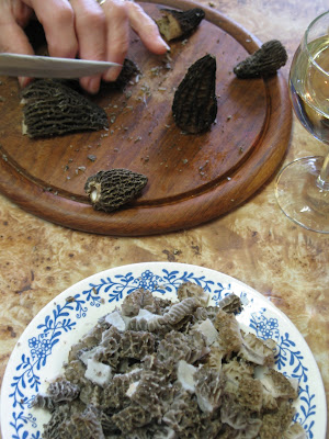 Meanwhile chop the morels (or other mushrooms) into bite-sized chunks. Leave small ones whole. (Don't wash the mushrooms, just wipe off any bits of forest still stuck to them.)
