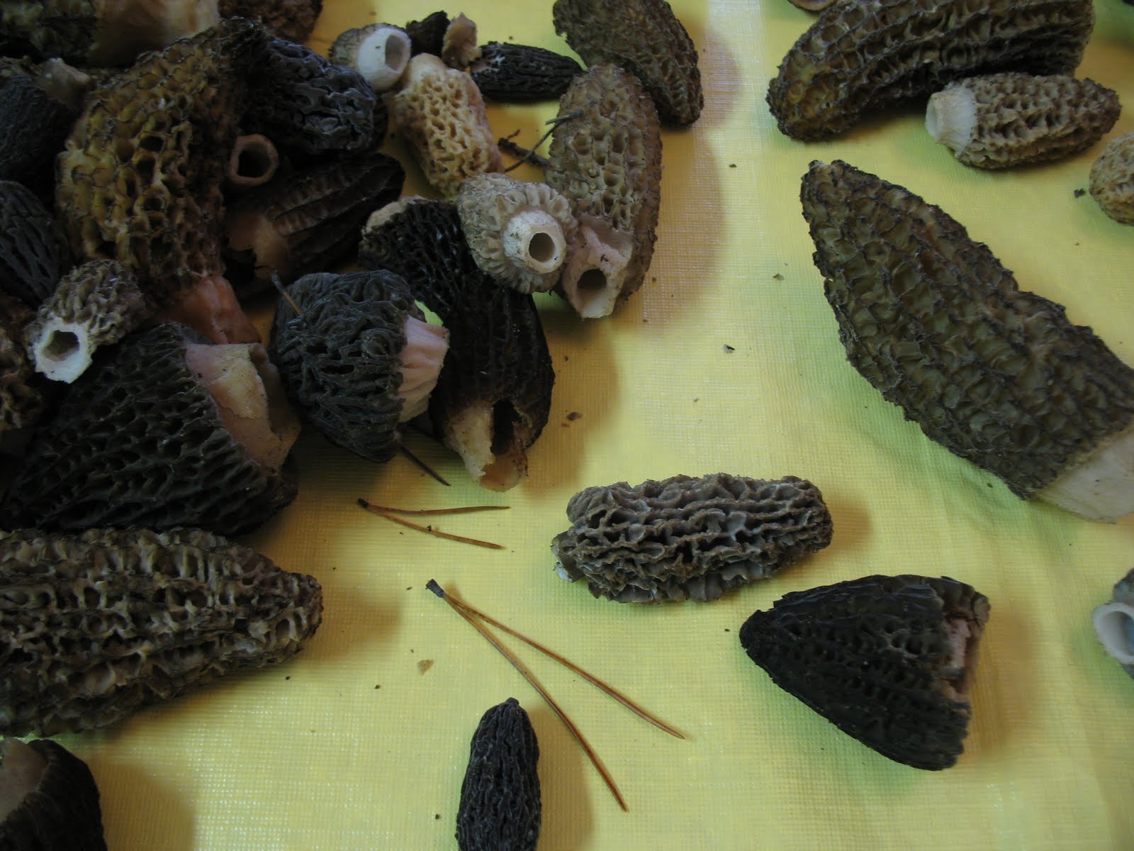 But Nature outdid herself when she offered up for us to share - her abundant crop of wild forest morel mushrooms. These were thanks to the devastating forest fires that spread through this area last year. Every cloud has a silver lining, and we were really thankful for these. They grow best in burned out areas, so we reaped the benefits this year. A whole pailful of these funny, wrinkly-looking little forest caps. Tasting of the earth and the woods.